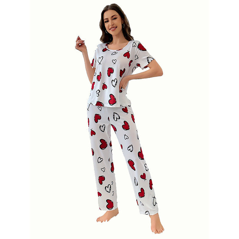 The Short Sleeve Heart Print Pajamas Set offers a perfect combination of comfort and charming design. Made from soft, breathable fabric, this set features a playful heart print that adds a touch of warmth and personality. The short sleeves provide lightweight comfort ideal for warmer nights, while the relaxed fit ensures ease of movement for restful sleep. This pajamas set is an excellent choice for those seeking cozy, stylish nighttime wear.