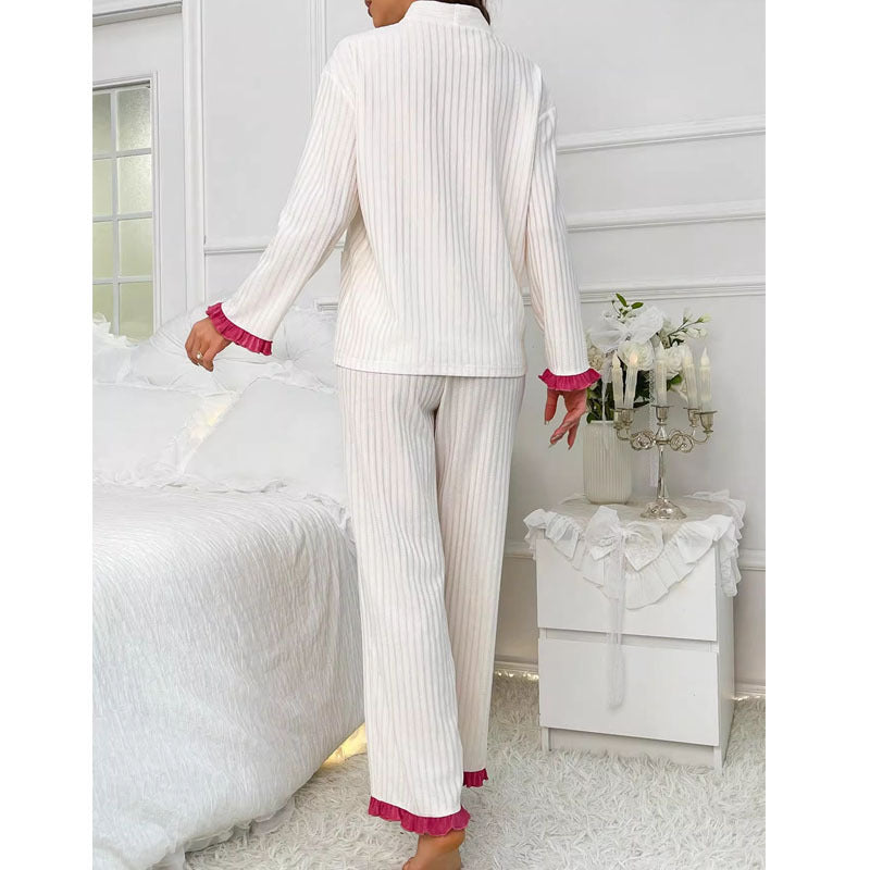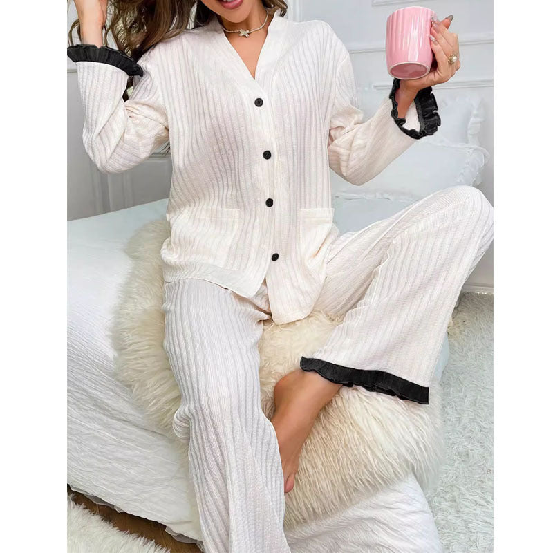 The V Neck Long Sleeved Pajamas Set offers a refined balance of comfort and style. Designed with a flattering V-neckline and long sleeves, this set provides gentle coverage and a relaxed fit for restful sleep. Made from soft, breathable fabric, it ensures all-night comfort and ease of movement. Ideal for those seeking elegant yet practical sleepwear that supports relaxation without compromising on design.